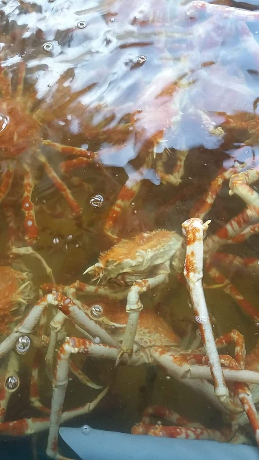 These are the largest crabs in the world and claw to claw they can reach a length of 5.5 metres. It all seems awful, seeing these beautiful creatures in a tank, though realistically no worse than factory farming. But all the same not nice.