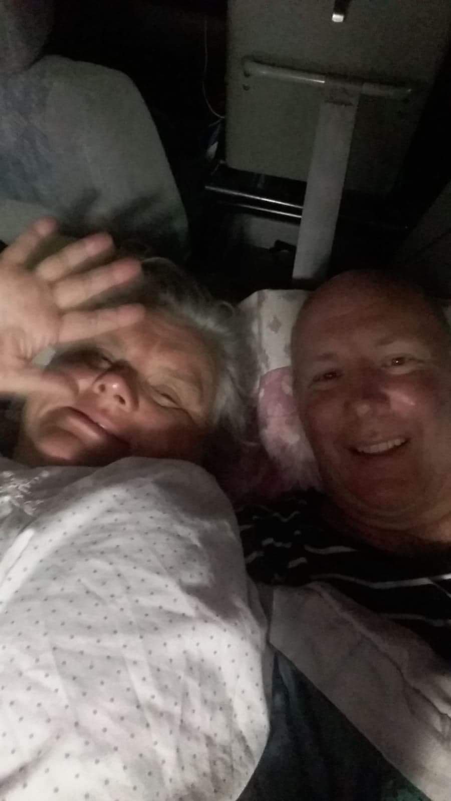 We had a lovely tea, tucked ourselves in for the night. Because we were high up it was slightly cooler but not much. So snuggled up and happy we were, we sent Annie a photo. We eventually managed to sleep.