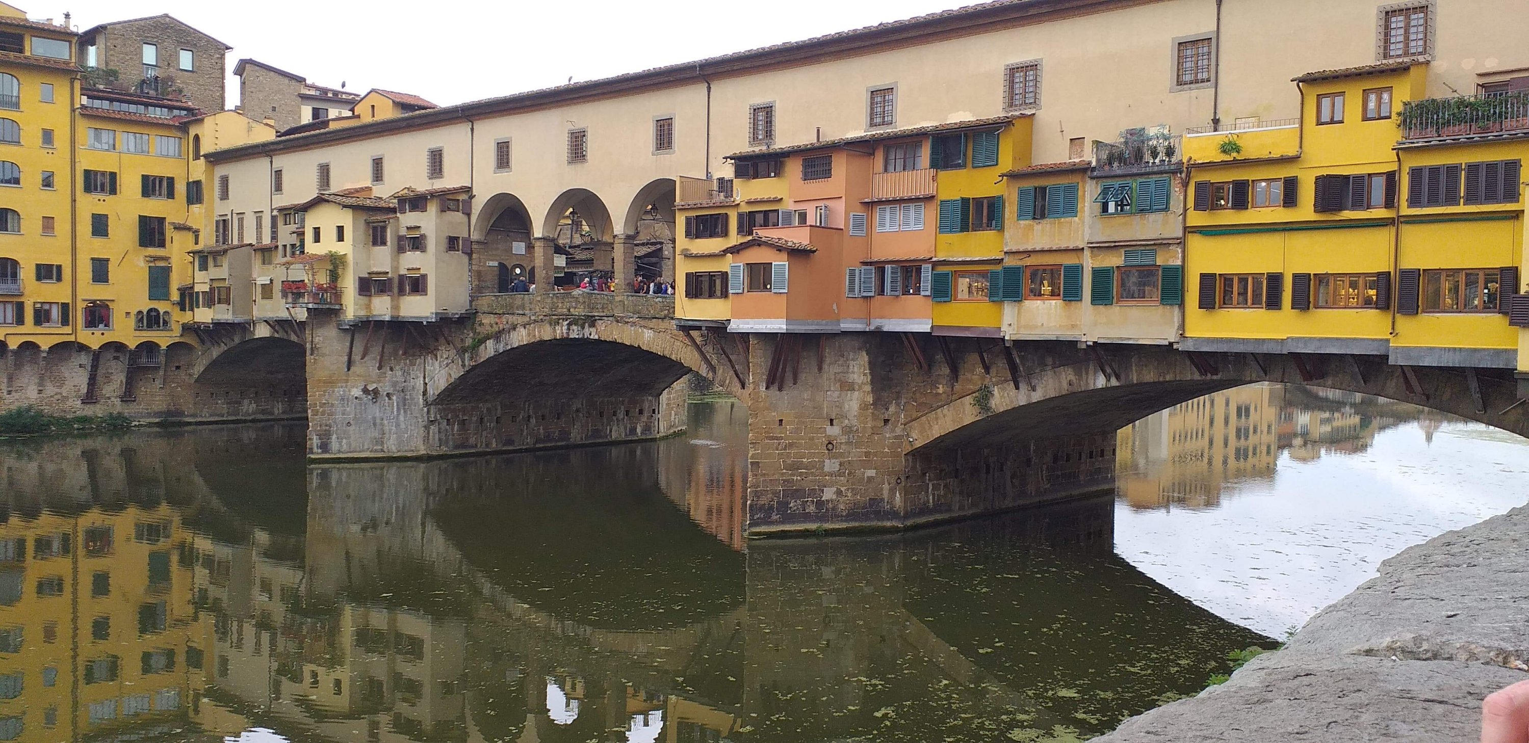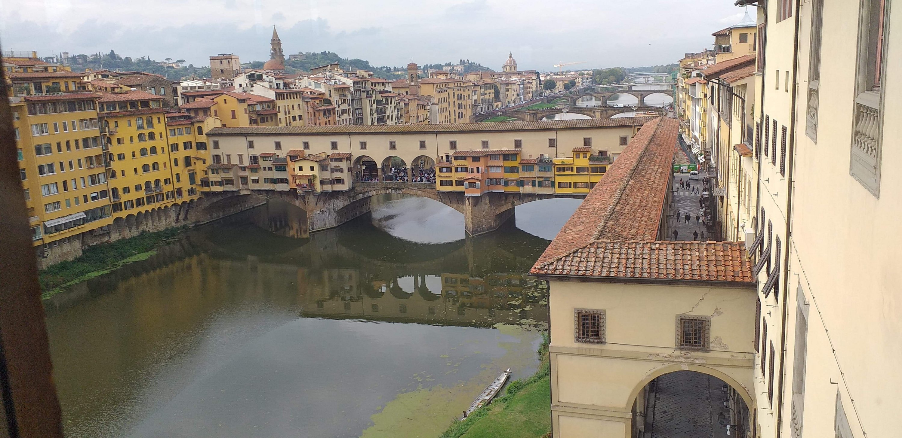 Winding our way towards the Uffizi we stopped to look at the Ponte Vecchio, or Old Bridge built in 1345. During World War II it was the only bridge across the Arno that the fleeing Germans did not destroy. It is really impressive.