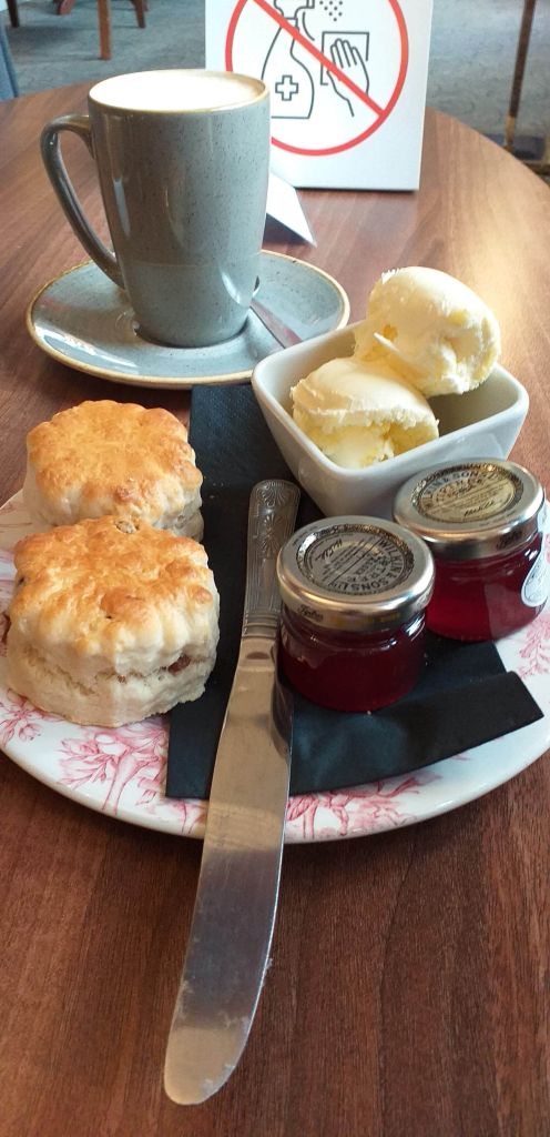 When in Devon it would seem churlish not to partake in a cream and jam scone. Automatically putting cream first then jam and then pondering if this is the right way here. Some people get very hot under the collar about it all. For me it seems right and if you put it the other way I think there is more of a chance of the cream slipping off and that would be a catastrophe!