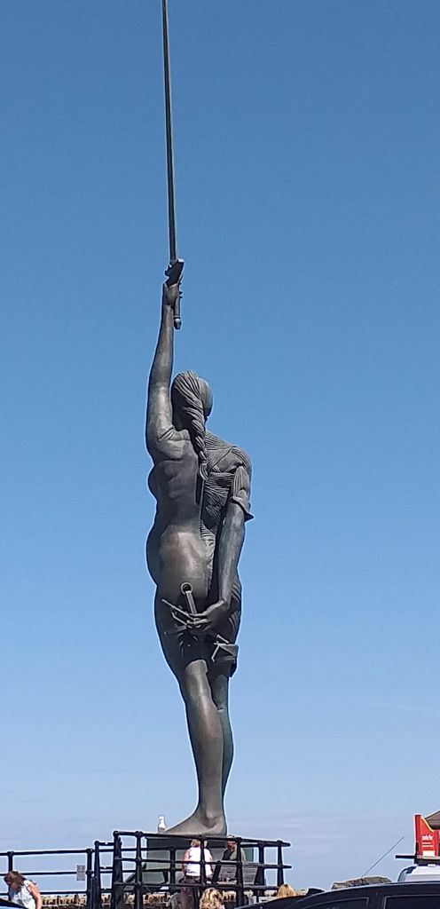 We headed to the harbour as I had booked a boat trip. Before we boarded we had time to look at Damien Hirst’s 64,foot sculpture in the harbour, Verity. He lives or used to live in Combe Martin which is nearby. Hirst donated it to Ilfracombe to help with tourists, it divided opinion from the outset.