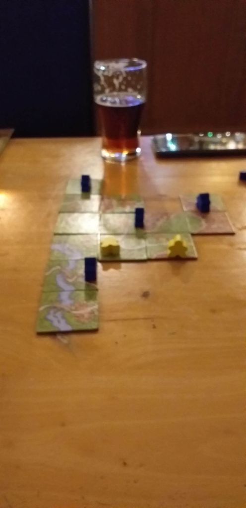 We had a nail biting game of Carcassonne. Pete whooped me so wish I hadn’t re explained the rules to him. I also blame the lady who has a womb with a view!