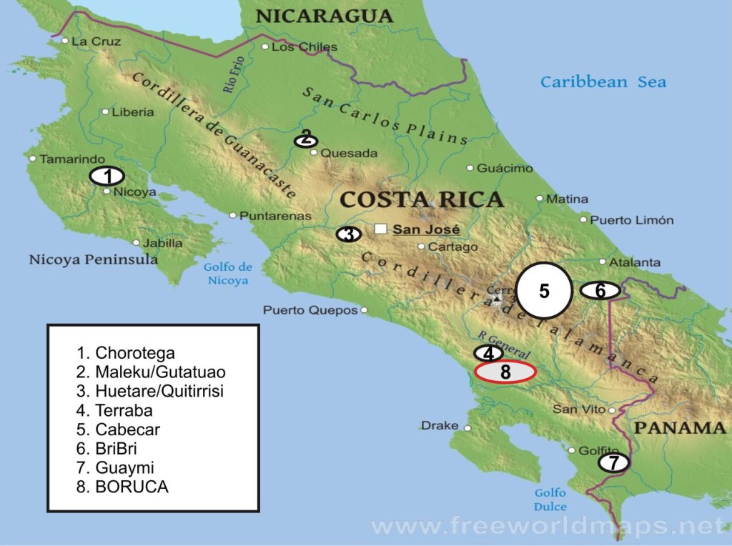 So officially there are the Huetar, Maleku, Bribri, Cabécar, Brunka, Ngäbe, Bröran and Chorotega, and they represent 2.4% of the total population. According to the 2010 National Census, a little over 100,000 people thus self-identify as Indigenous.