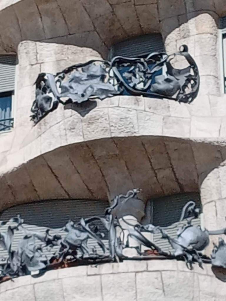 Lisa gave a brief overview of Gaudi, who was very much disliked by his university lecturers because he couldn’t stick to their parameters. So much so that they convened a meeting to get rid of him. Only one lecturer stood up for him much later in life Gaudi and him would be in competition with each other. We we standing by Gaudi’s first commission, a lamppost. The council offered him a pittance as he was newly qualified – nothing changes! Gaudi insisted on getting 12 times that amount, he didn’t get it but it was increased. The outcome was that the council vowed that he would never be asked to complete a project , which is ironic given the revenue he continues to bring in to Barcelona.