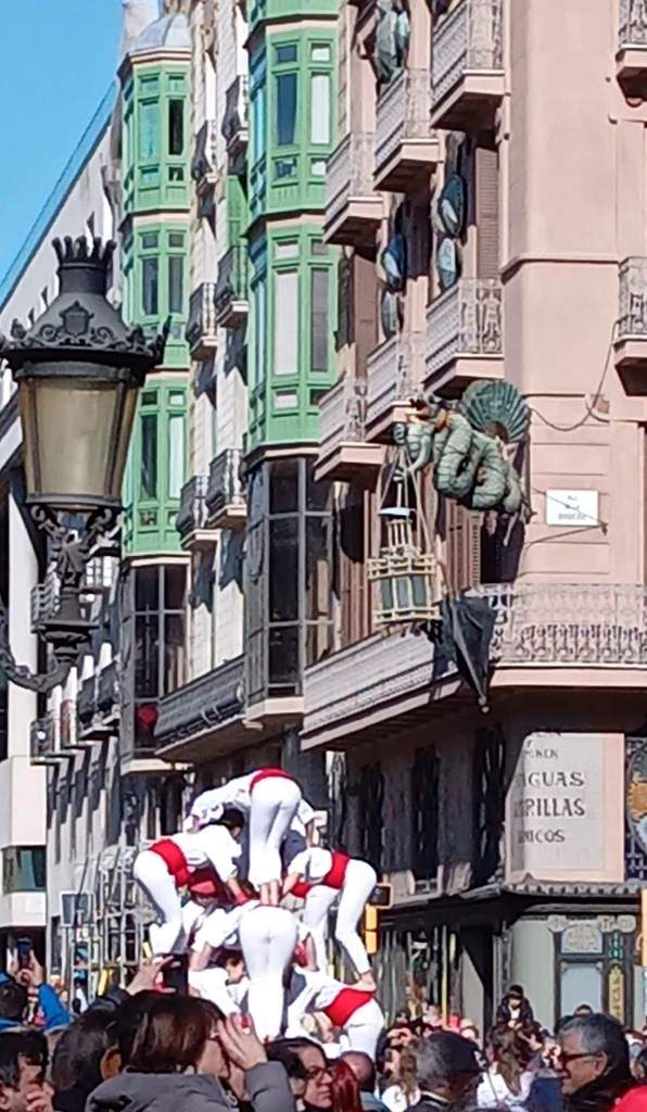 On the way to the first Gaudi house the festival was starting up roads closed and human towers or Castells assembling.